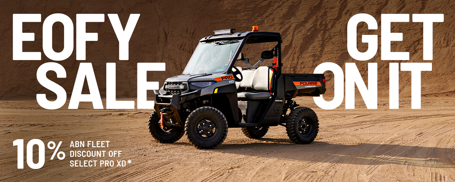 Make the most of EOFY with Polaris. Invest in a commercial utility vehicle built to perform. Enjoy end‑of‑financial‑year savings on Polaris PRO XD models, designed for demanding job sites, fleet use and hard‑working environments.